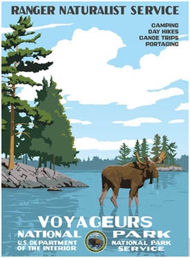 Our latest project with celebrated graphic artist Steven Thomas, Voyageurs National Park WPA - Style poster is an original design based on the Works Project Administration (WPA)Federal Art Project vintage poster style. Heavy stock paper was used to produce a non-reflective matte finish for a look and feel of the original silk screened posters. Please check our other items for a high quality frame for this poster.