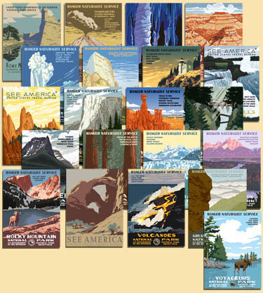 Pick any six(6) of our posters from our entire collection at a special price. These posters measure 17 inches wide by 23 inches tall and are ready for framing. These include posters for Bryce Canyon National Park, Garden of the Gods in Colorado Springs, Acadia National Park, Yosemite National Park, Yellowstone National Park, Carlsbad Caverns, Olympic National Park, Fort Marion National Park, Zion National Park, Lassen Volcanic National Park, Niagara Falls, Hawaii Volcanoes, Arches National Park, Great Smoky Mountains National Park, Seqoia National Park, Glacier National Park, the Grand Canyon, Voyageurs National Park, and Rocky Mountains National Park. These posters have been completely redrawn by hand from the original silk screened posters produced by the arts project of the Works Prograss Administration under President Franklin D. Roosevelt or they have been produced as original works when a period poster doesn't exist. Simple click on the "Request a Catalog" link, enter your selection in the notes field when completing your order or email your list to david.ford@fordcraftsman.com.